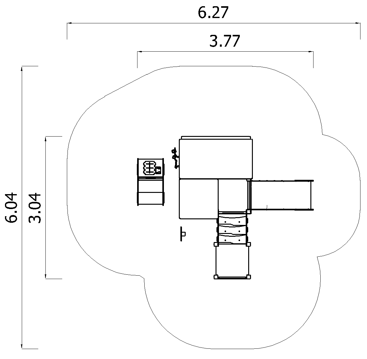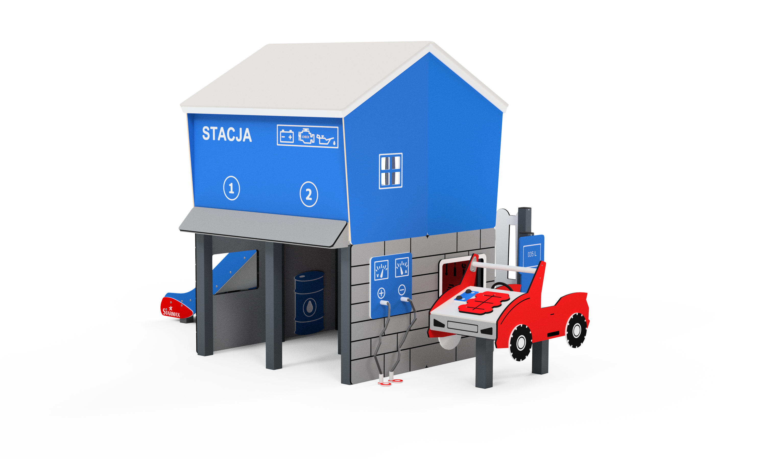 P3521 Autószerelő műhely csúszdával – kreatív játszóeszköz óvodába és közparkba