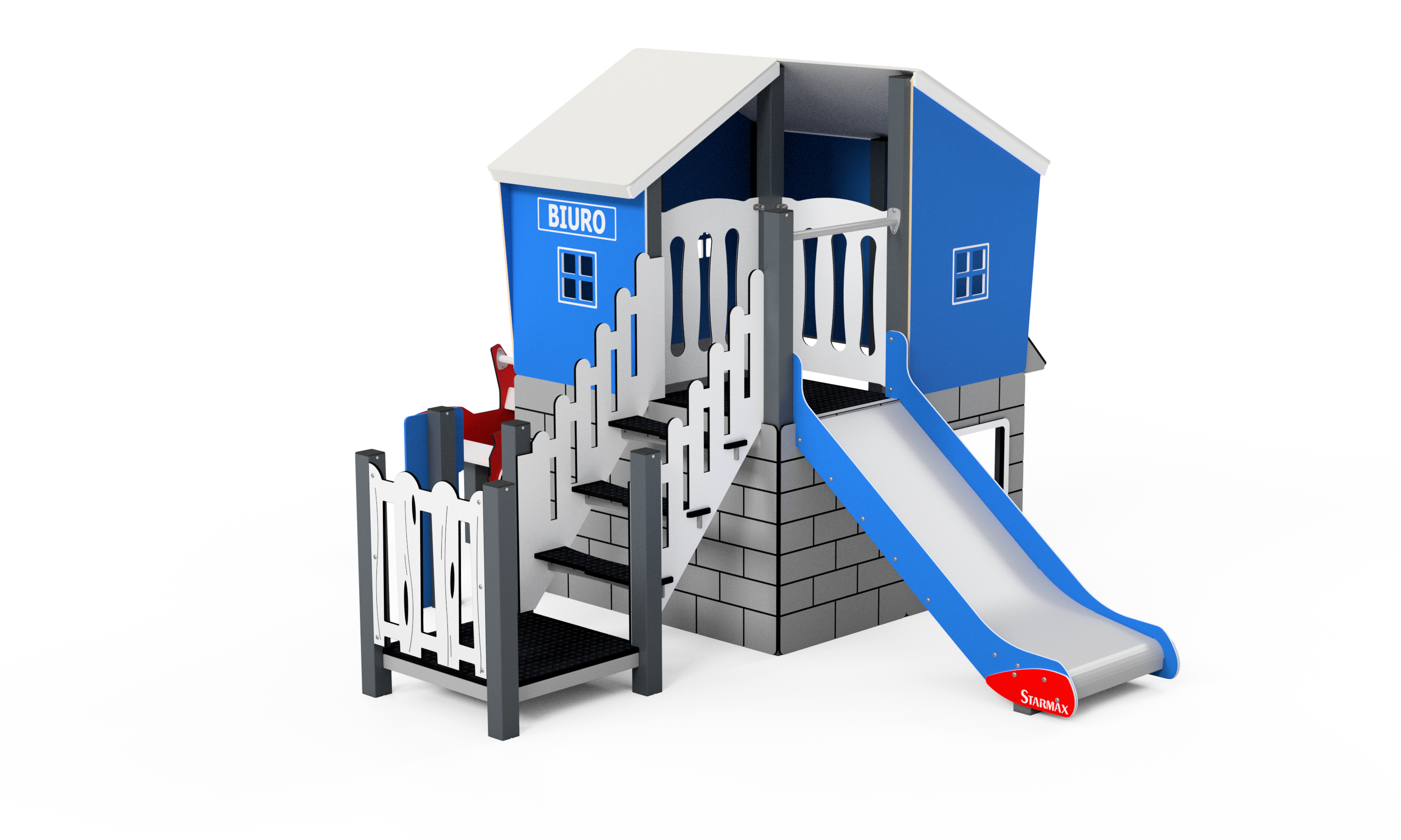 A P3521 Autószerelő műhely csúszdával egy különleges játszóház, amely egyszerre nyújt szórakozást, szerepjátékot és mozgásfejlesztést a gyerekeknek.